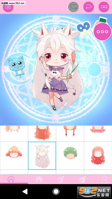 用头发、眼睛、眉毛、嘴巴以及漂亮的衣服和饰品,各种各样的样式或者颜色应有尽有,让你设计出可爱的Q版女孩!