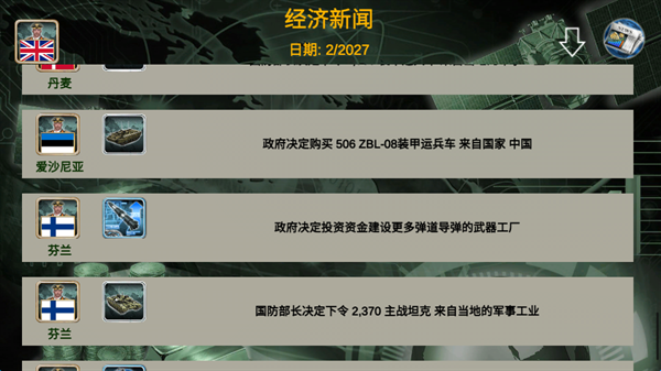 7、当每次回合结束,就可以看到各个国家的动态新闻,从而推断国家的实力。