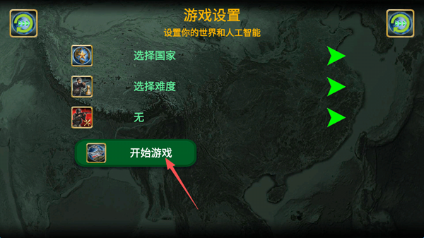 3、选择操控的国家,选择难度,还可以自定义场景,也就是设置国家关系和国际联盟。