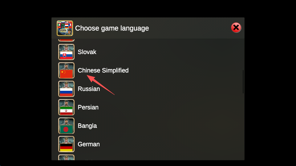 1、进入欧洲帝国2027游戏,点击“Chinese Simplified”,就可以设置成简体中文了。