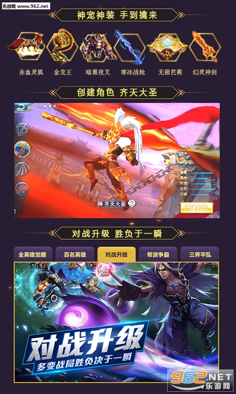 物品都可以靠打获取!无需充钱!玩法更有三界共主,仙魔争霸,仙魔大乱斗,自由1v1,1v3,千人仙魔阵营战