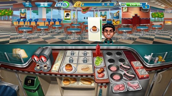 3、随着玩家不断解锁关卡,会得到更多新的食材和道具,也会越来越手忙脚乱。这里有一个小技巧分享给大家,很多客人会选择点套餐,而套餐中只要上了一个食物就可以增加顾客的等待时间,因此可以常备一些饮品,用于增加顾客的等待时间。