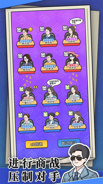 董事长模拟器正如游戏的名字所言让玩家们体会到从小兵到大佬的创业体验,游戏中真实的还原了一家公司从初创到发展壮大的全过程,让你在游戏中成为一个公司总裁,从几人的小团队到业界龙头企业,一切公司的发展和制度都由你来决定。