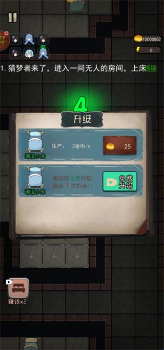 1、优先升级床铺:进入宿舍后,第一时间升级床铺以快速获取金币,这是后续建设和防御的基础。