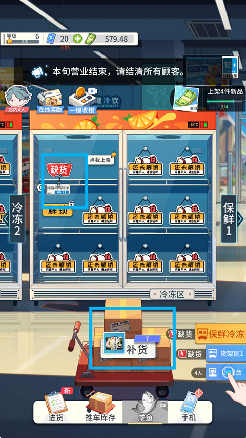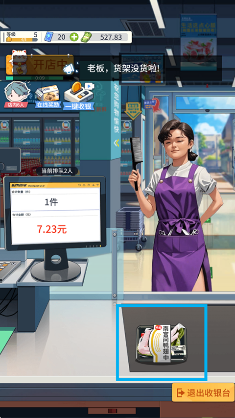 4、在游戏中玩家将会是超市的经营者,而你需要保持超市的正常运营,满足所有挑剔的顾客,不断成长壮大,并获得更多奖励;