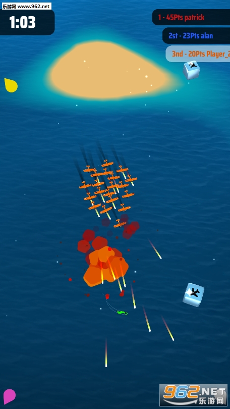 《海洋飞翔安卓版》是一款以多人竞技玩法为核心的io休闲手游,简单清新的画面,玩家在游戏中操纵着飞行在海面上进行飞行,你需要收集更多的飞机让自己变得更加强大,击败他人的飞机也能够增强自己的实力哦。喜欢的玩家可千万不要错过啦!
