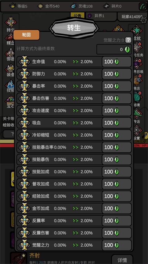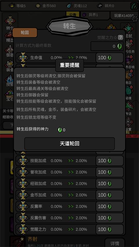 5、同时你也可以进行转生,转生后所有装备御灵技能等级变成零级,灵等级不变,技能强化不变。这里点击轮回;