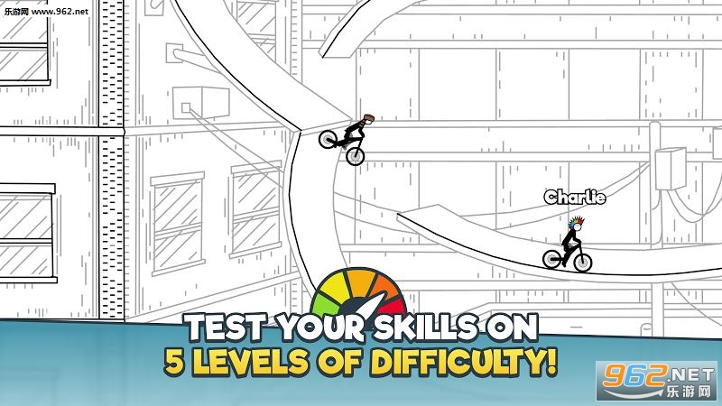 本作在玩法上和《滑雪大冒险》相类似,控制火柴人自行车越过各种各样的障碍到达终点,或者进行一场无尽冒险,比拼谁的分数更高。