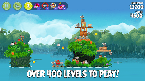 3、杀死所有的猴子,或者解救出笼中小鸟,才可以开启下一个关卡,但如果你想在每一个环节中获得最多星星,那就得多赢高分才行。