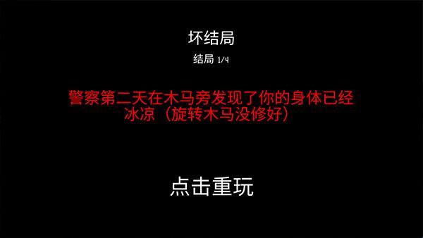 8、达成第一个结局,坏结局,警察第二天在木马旁发现了你的身体已经冰凉(旋转木马没修好)。
