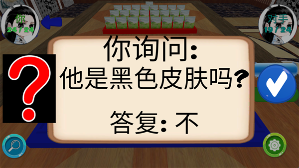 6、你可以选择各种问题进行询问,得到答案后可以选择盖掉相应的角色。