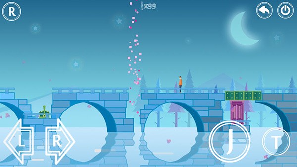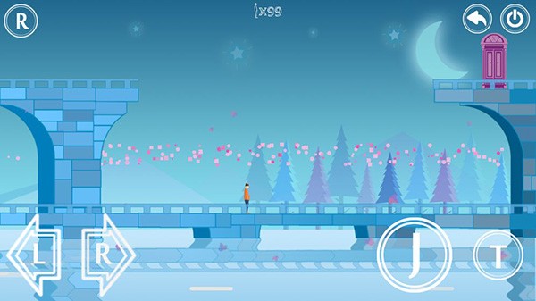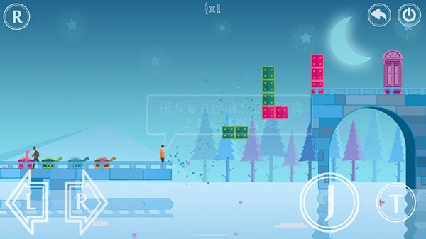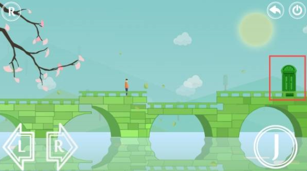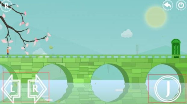 2、进入游戏场景后通过左下角L、R按钮控制角色移动,右下角J按钮进行跳跃。