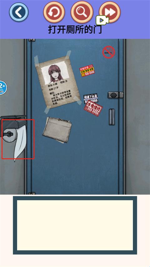 2、纸巾掉落后,点下方可以找到鬼手、厕纸沾染、头发;