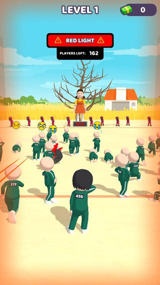 鱿鱼木头人是一款源自于最近抖音火爆的韩国电影而来的游戏。这款游戏将电影中玩过的几种玩法统统集合在这里,尤其是第一关的一二三木头人这个关卡完美复刻其中,小时候相信很多的小伙伴都玩过,惩罚都是比较简单,哪想过这么刺激的玩法,一旦被发现有动作,直接被射杀,就是这么离谱。而玩家获得每一关卡的胜利也可以获得大量的钞票奖励,相信最终胜利者的你一定可以获得超出常人的财富,并且除了第一个木头人的玩法之外,还有第二关的画出糖饼中的图形,以及后续的其他关卡都可以在这里玩到。