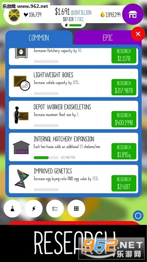 《养鸡公司 Egg, Inc》是由Auxbrain Inc提供的一款模拟经营类的游。在不久的将来,你将在鸡蛋中打开新世界的大门,建造鸡舍,孵出小鸡,并将产出的鸡蛋卖出,打造出一个最先进的鸡蛋公司,但是在增加产量的同时,更要协调好交通、销售之间的关系,平衡自己的资源分配,让你的公司利益最大化。