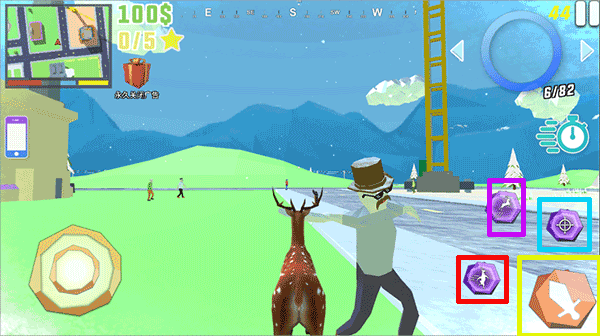 企鹅努力飞是一款风格沙雕、玩法自由的3D破坏类冒险游戏,玩家扮演一头外表可爱但内心顽皮的鹿,在多个精美场景中自由探索、搞怪恶作剧并实施大规模破坏。游戏操作直观,设有远程攻击、近战攻击、跳跃与瞄准四大功能按钮,便于执行各类动作。