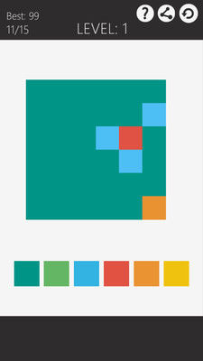 非常有趣好玩的一款休闲闯关类游戏,游戏中玩家的最终目的就是通过不断地变换颜色,让方块中的所有颜色变成一种颜色,会越来越难!