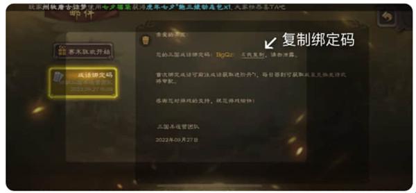 三国咸话社区账号绑定介绍
