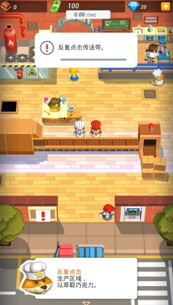1、待剧情了解结束后,紧接着便开始了正式的营业工作!等到一切准备就绪,现在,我们得动手萃取巧克力,然后将其放入烹饪锅中加热融化,再制作一些蛋糕,现在需要反复点击生产区域,以萃取巧克力。