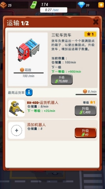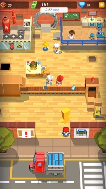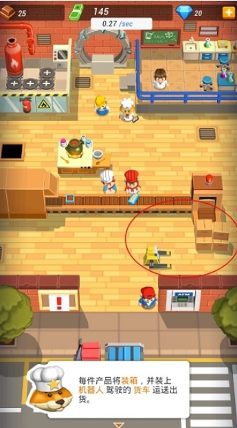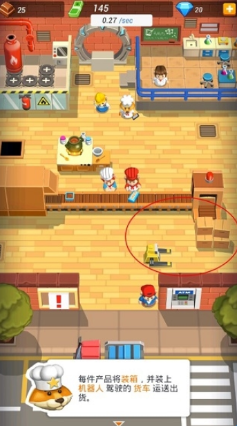 3、每件产品将装箱,并装上机器人驾驶的货车运送出货,运载货品需要留心货运容量,否则无法提升经营收益,如果需要更多机器人或货车,不如去问问机械师吧。