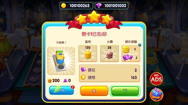 5、尽力赚取硬币和钻石,升级厨房设备。