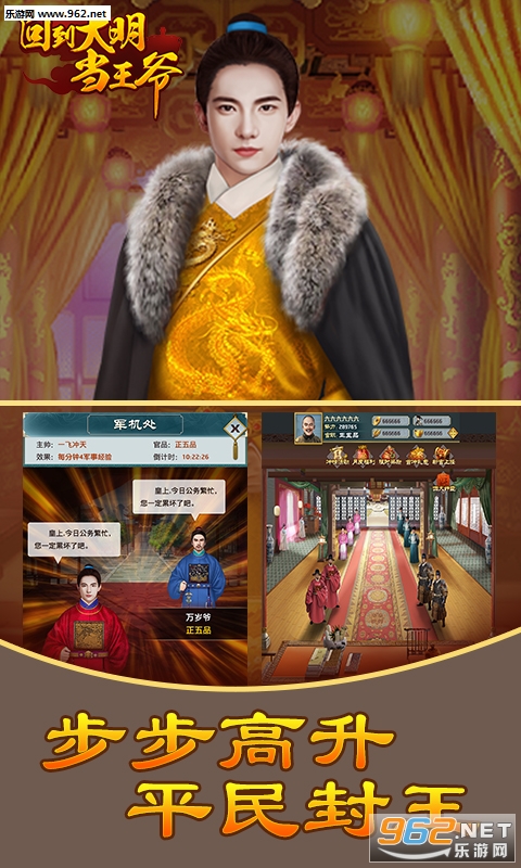 《回到大明当王爷》是一款古代官场题材的策略经营手游,玩家扮演一名普通的小官员,通过自己的努力和经营,逐渐成为当朝一品大员。玩家在游戏中可以亲力亲为,处理政务,领兵作战,惩治奸臣,培养幕僚,逐渐引导朝廷走向盛世。在游戏中,玩家可以培养自己的惩善扬恶,以民为本的价值观,体验盛世的来之不易,并能够在游戏中结识有同样兴趣爱好的好友一起享受游戏的乐趣。