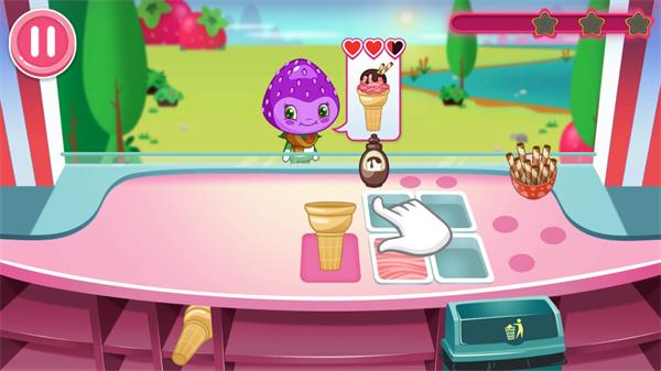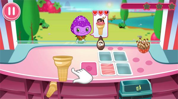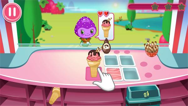 草莓甜心冰激凌岛可以教你制作各种口味独特的冰激凌,英文名叫Strawberry Shortcake,游戏玩法轻松有趣,玩家不仅可以通过和不同NPC的互动来解锁更多冰激凌的的口味和制作配方,还能够随时按照顾客需求和市场变化来调整自己的经营计划,游戏关卡难度不高,新手上手也非常快速,让你可以成为真正的冰激凌制作大师。