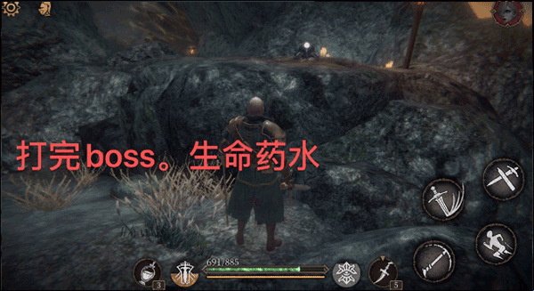 7、另外boss还有个强化站桩读条可以输出是很好的机会,目前我倒是没发现这个强化强化什么,也许是伤害更高,但是攻击形态没有变化。另外别看这个boss很大一个,其实韧性不算很高,动作会被两轻突刺打断,如果你血量不健康并且刚躲过一套建议先打一个两轻突刺再喝血,回复输出两不误。