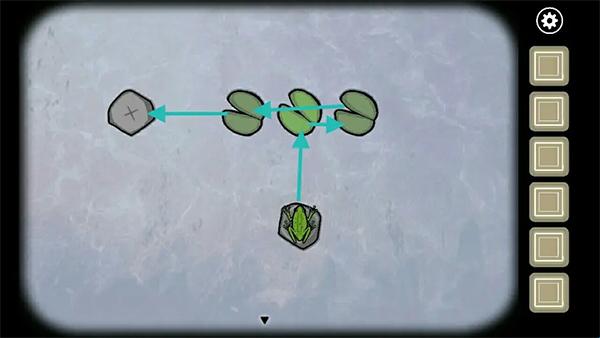 1、在大门右侧湖面点击青蛙,按照正确路线依次跳过所有荷叶,最后停在石头上,即可获得第一只青蛙;