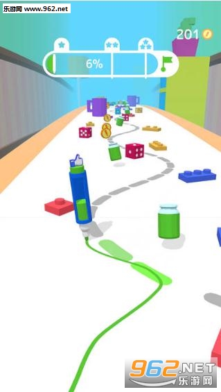 1、玩家左右滑动来操作铅笔在规定的线路上画线行驶;
