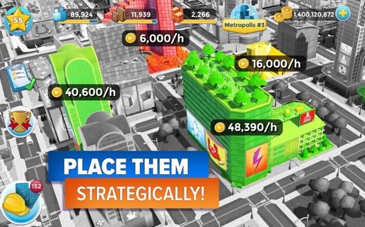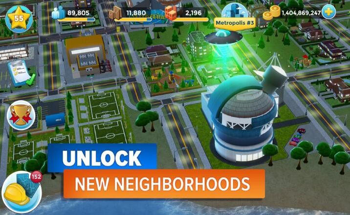 2、逐步解锁所有社区:购买更多房地产,并将您的城市从一个不起眼的小村庄扩展到一个庞大的城市乌托邦。