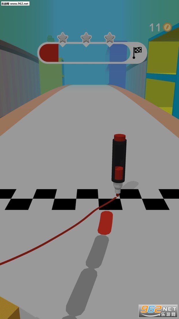 玩家左右滑动来操作铅笔在规定的线路上画线行驶