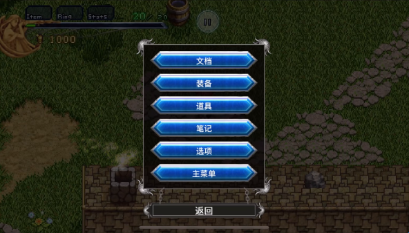 7、在菜单界面,我们可以随时使用文档、装备、道具、笔记和选项