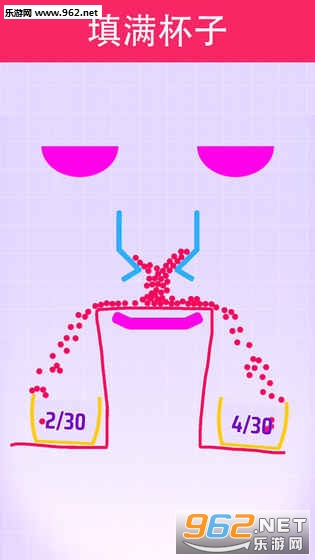 开始时就有100个可爱的小球——通过点击和拖曳画出一个形状,任何形状都可以,让尽可能多的小球进入到杯子里!