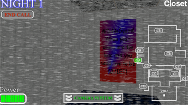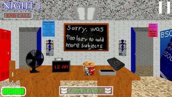 2、摄像系统可用于监控Baldi和他的朋友们的行踪,但要小心。你也可以使用办公室的门来抵御他们的攻击,但关闭的门会更快地消耗电力,而且你只有有限的数量可以撑过夜。