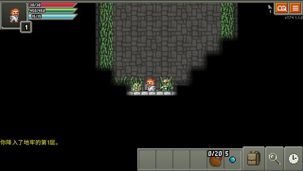 游戏的操作方式非常简单,玩家只需要点击屏幕就能让角色进行移动,点击出现在面前的敌人就能自动发起攻击,如果发现道具则会自动将道具收入到包裹之内。游戏界面的左下角按钮分别是“等待一个回合”,“搜寻身边范围”以及“针对一个目标的检查”,好好利用这些功能就能在地牢中发现意想不到的收获。