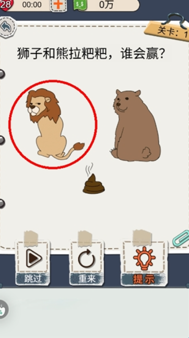 3、接受挑战后会开启游戏的关卡,完成需要完成关卡,这里点击狮子。