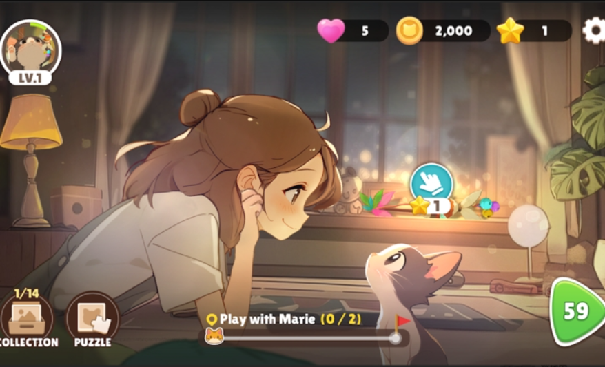 4、游戏操作简单直观,画风可爱,整体节奏轻松,非常适合在闲暇时放松心情,享受治愈的“云吸猫”乐趣。