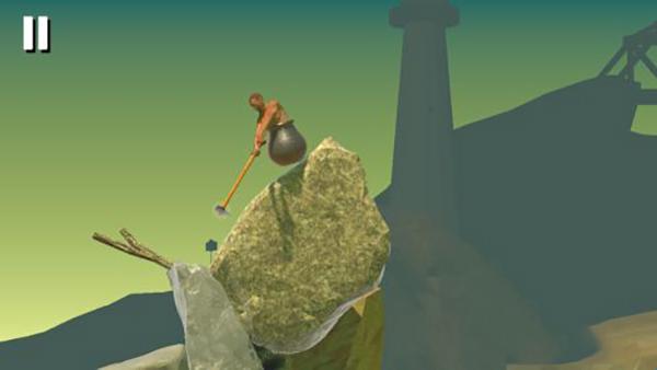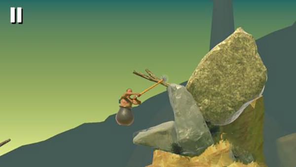 1、玩家控制一个坐在似乎是缸里的人,用一把榔头不断往上爬,操作极其简单;