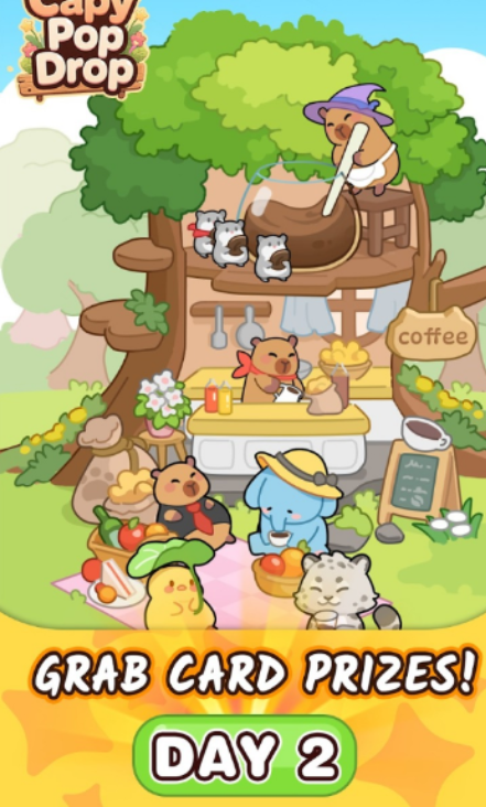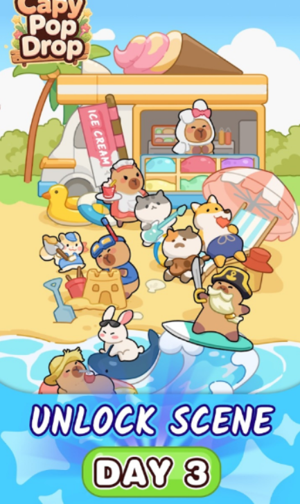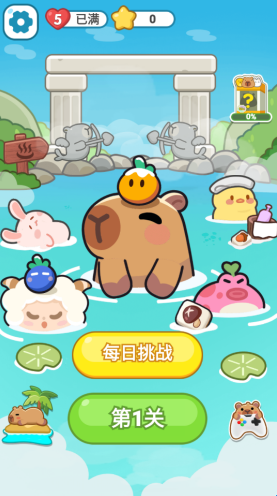 3、以水豚的陪伴为主要体验,在三消关卡中,水豚会以多样形态出现,陪伴玩家完成挑战,营造温馨的游戏氛围。