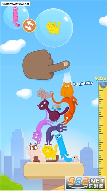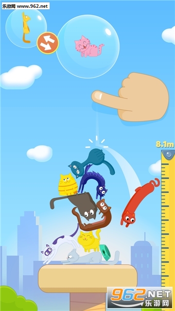 旋转姿势、找好位置,放下猫咪,尽可能堆出最高的猫咪塔,力夺高分!如果猫咪从塔上坠落,你和猫咪就玩完了;