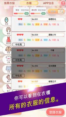 1.你可以看到在衣柜所有的衣服的信息!