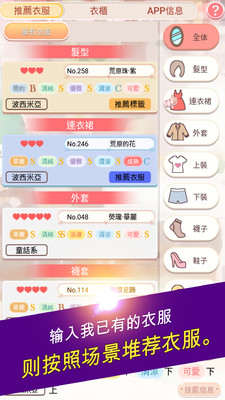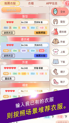 一款非常受女生欢迎的换装游戏哦,小编也沉迷其中不能自拔。游戏中有非常多时尚漂亮的衣服,你的任务是按游戏的要求搭配出各种不同风格的装扮,很讲究你的穿衣品味哦。