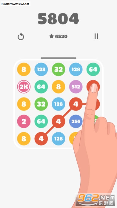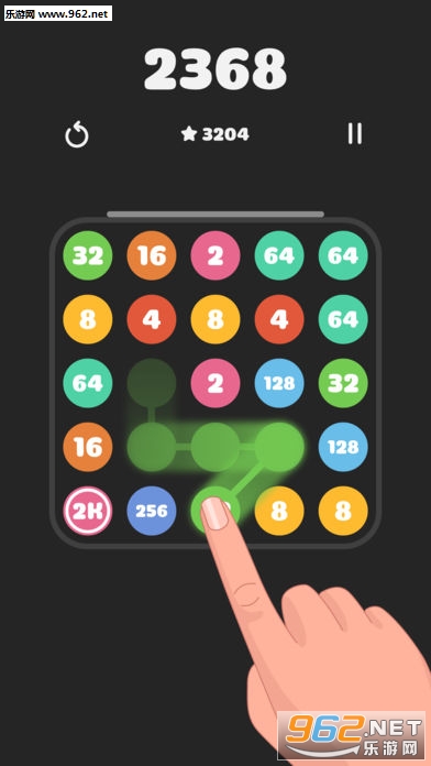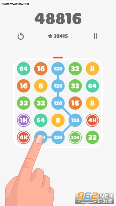 将手指移到相同数字的气泡上,连接它们并合并为更高的数字,连接的数量越多越好。你能够获得多少分数呢?