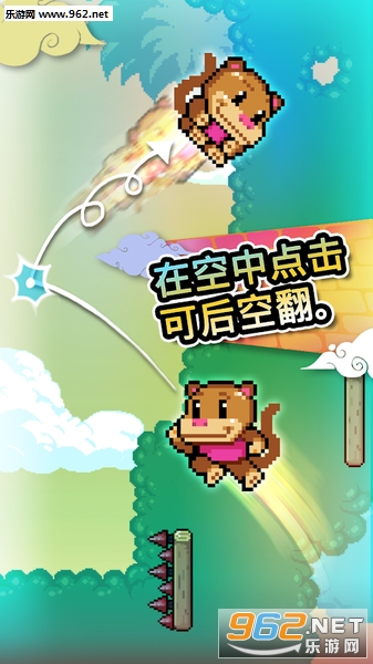 长按屏幕可以跳的更高,在空中再按一次可以进行后空翻;