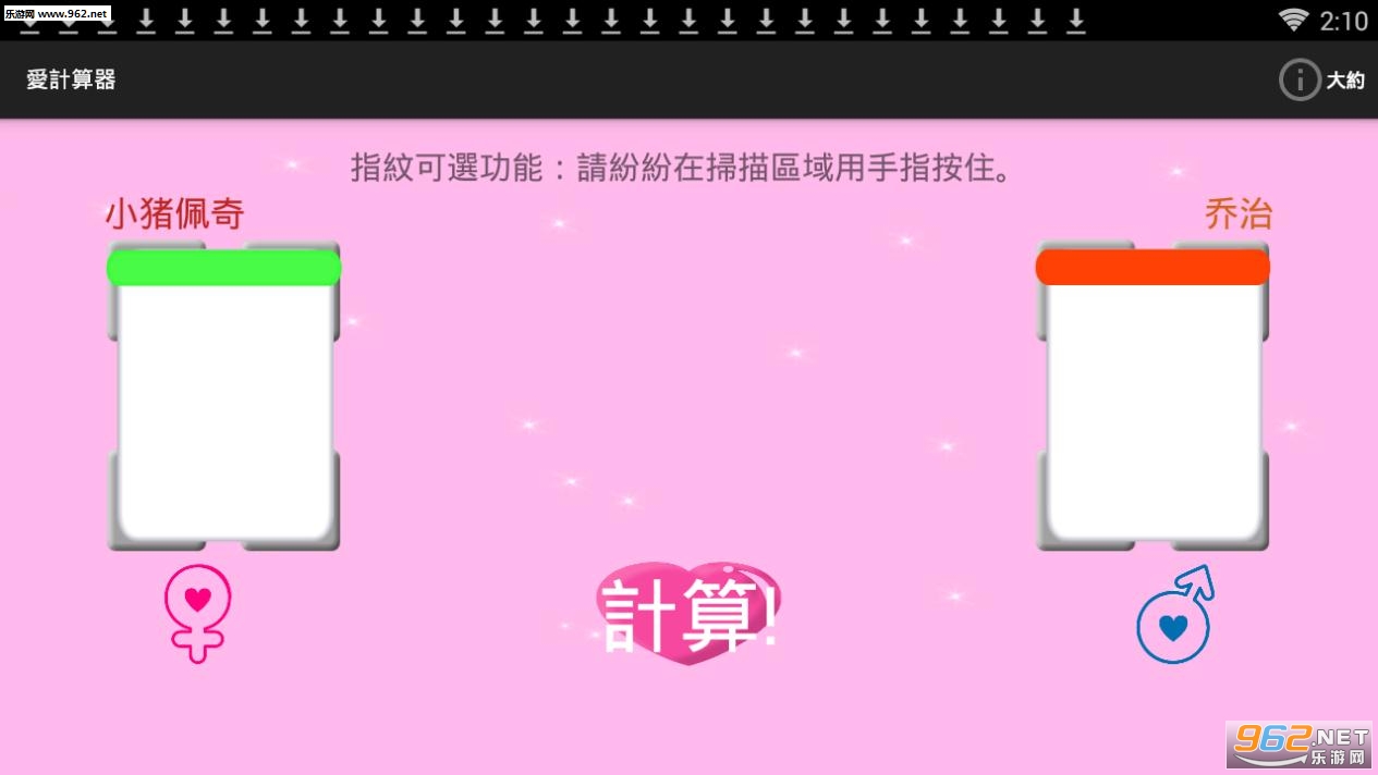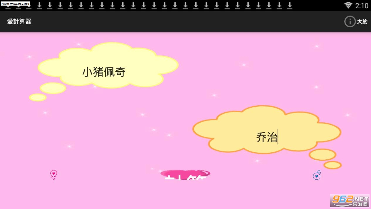 《爱情计算器测试手机版》是一款相当有趣的恋爱测试趣味休闲类游戏,大家可以利用这个游戏测试你和另一半是否合适哦!操作非常的简单,,只需要输入双方的名字,即可获得相应的答案,非常的有意思,喜欢的小伙伴可以下载哦!