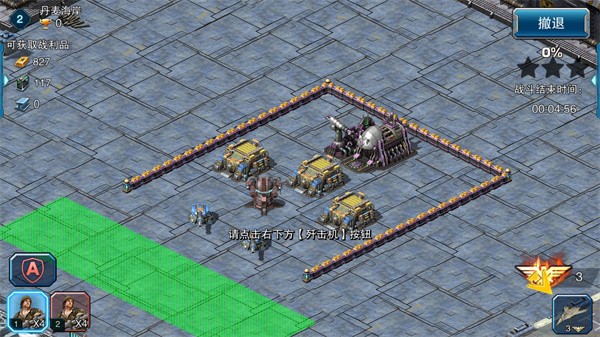 5、使用战术技能需要消耗指挥点,摧毁建筑可获得指挥点,派出突击队清理战场,点击左下方的部队,在绿色区域投放部队,如图所示