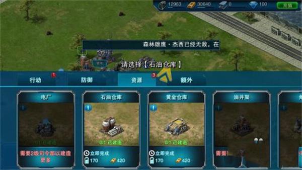 6、成功占领了这个据点,持续获得石油补给,返回基地,建造石油仓库,用于存储石油,如图所示