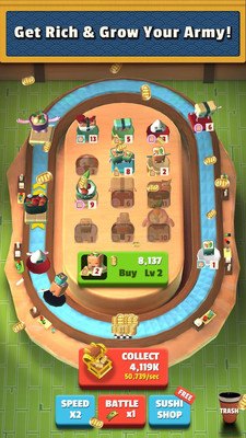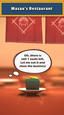 一款好玩的模拟经营手游,无人光顾的寿司店即将倒闭,寿司却能自己销售自己,告诉老板寿司的做法,吸引顾客,不仅拯救了寿司店,还让老板成了亿万富翁。