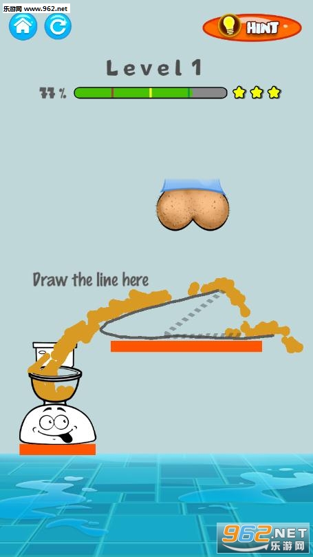 根据关卡中给出的相关物品,通过划线的方式,将从屁股中流出的排泄物顺利的接到马桶之中!